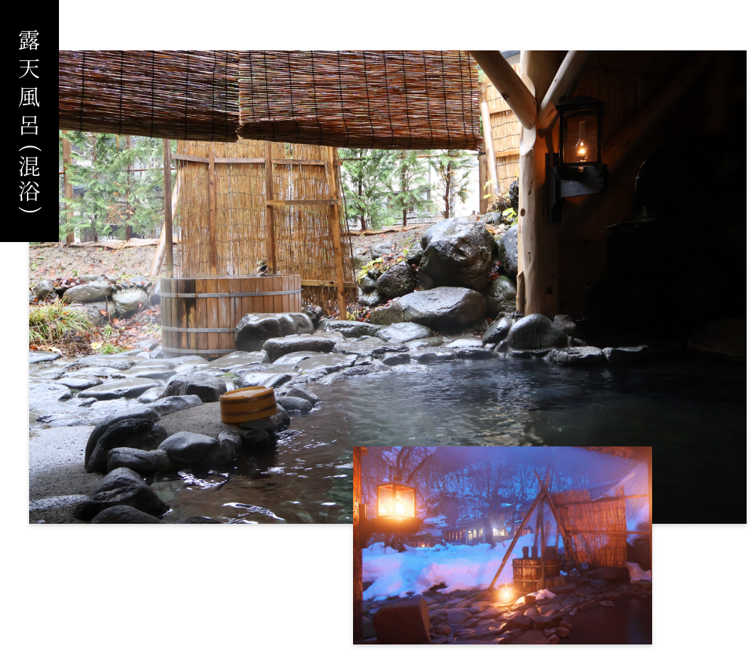 夜には星空、朝には静寂と風景が湯と一体化する。
